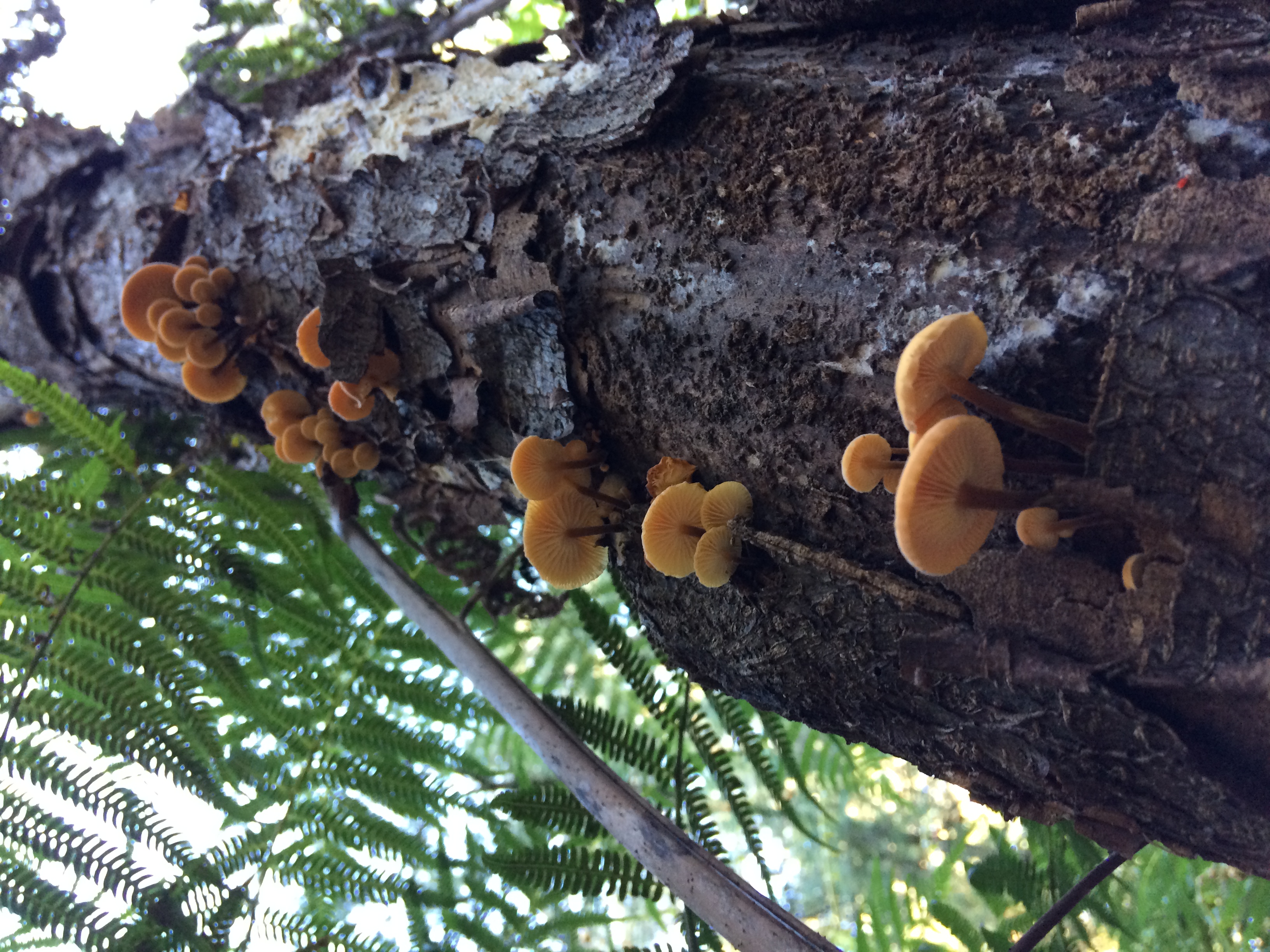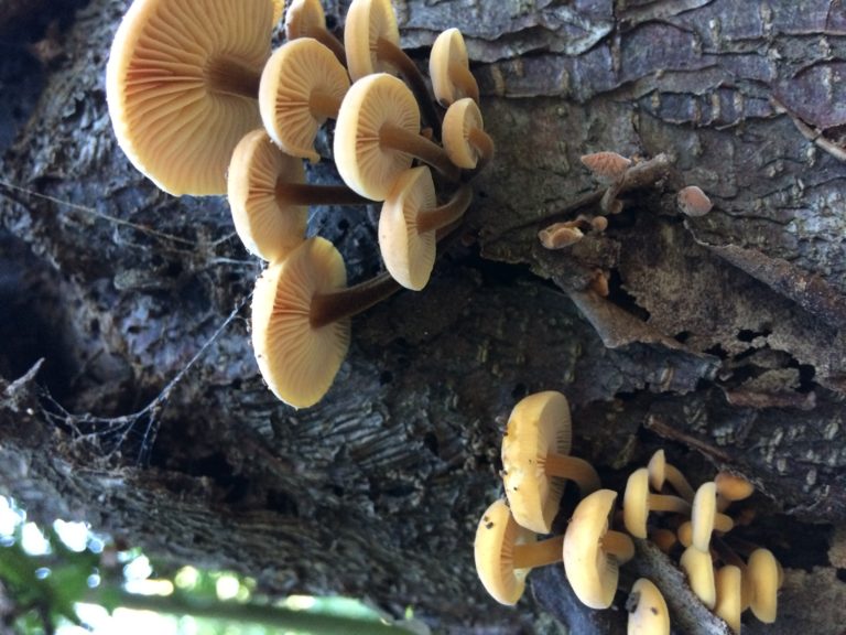 Autumn and winter 2018 has been a great season for Flammulina velutipes. Some massive bunches popping up from Poplar and Pomaderris stumps around Selby. The velvety stipe, that darkens as it nears the attachment to the substrate, which when cut is hollow like a tube, the white spore print and the strong citrusy smell are all characteristics of this species.