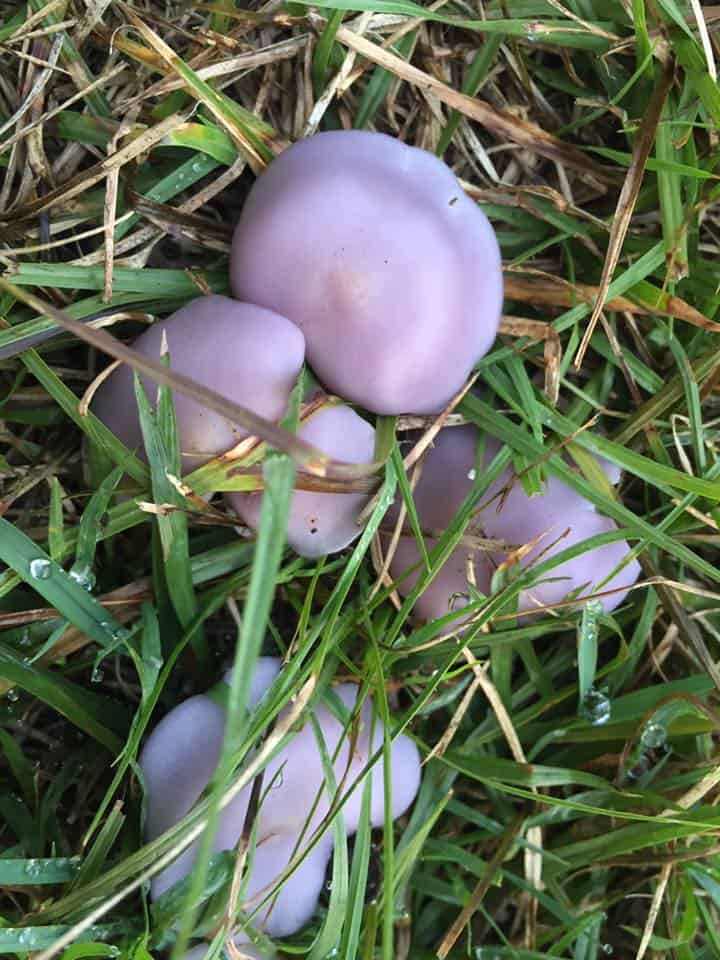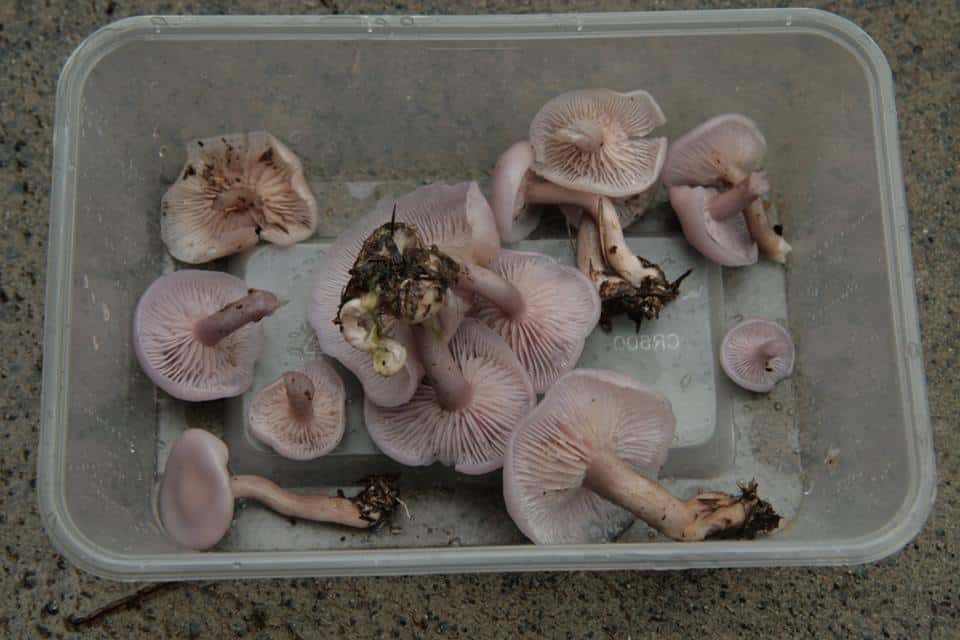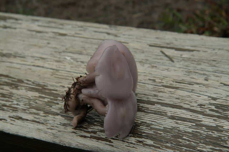 The last pic is by me showing the amazing lilac purple staining of the mycelium of this species – it actually bleeds liquid this colour when cut.