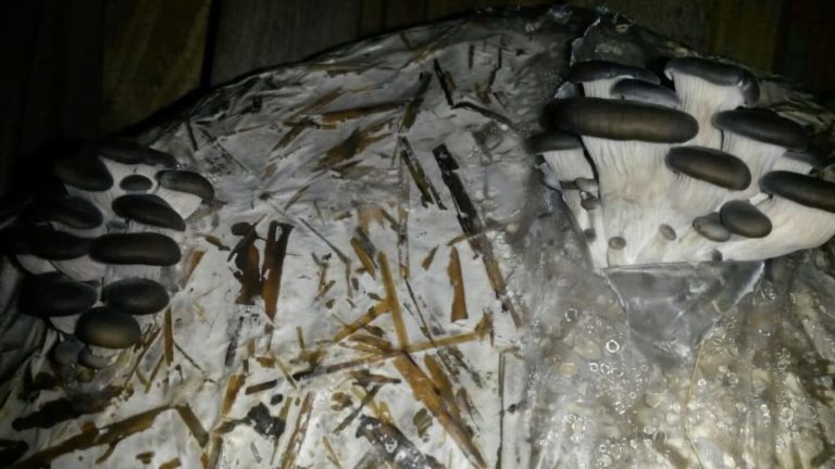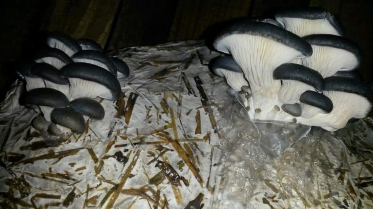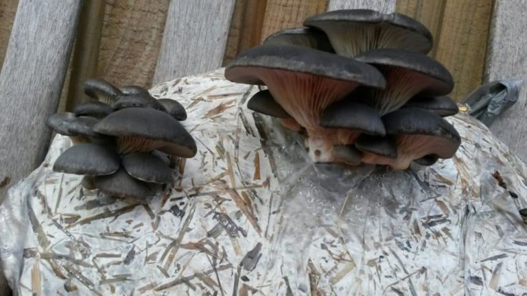 Easter Sunday we were excited to see a nice first flush of Lepista sordida (confirmed via DNA) – a small tester bag of colonised rye grass seed and sawdust innoculated…