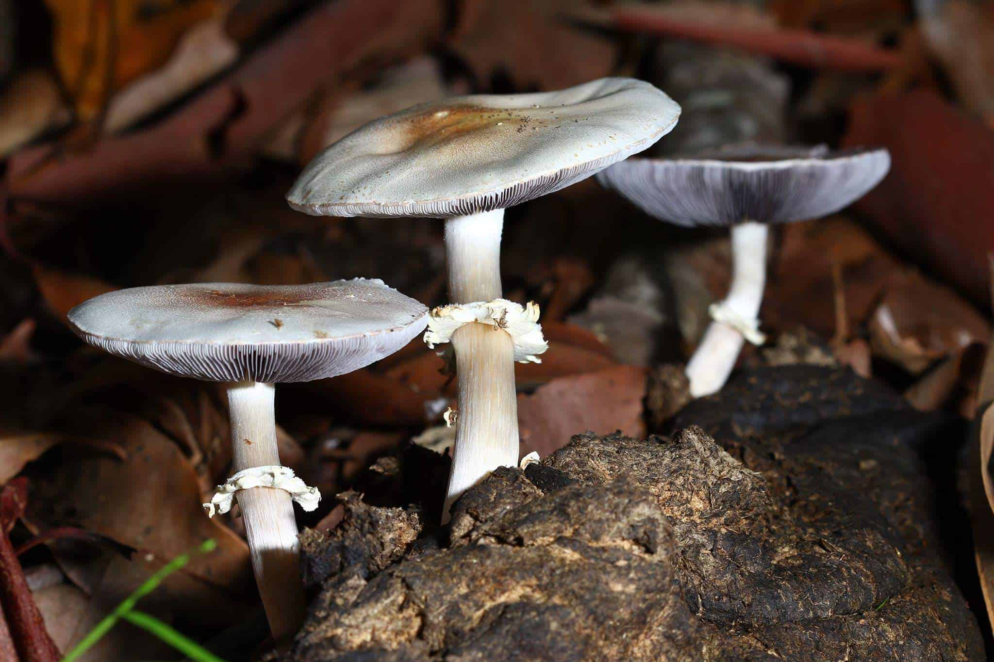 Dave up in NNSW was finding these ‘King Stropharia/Stropharia rugosoannulata‘ growing in cow manure that were often white or bone in colour.